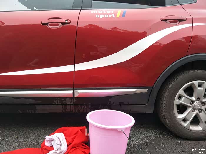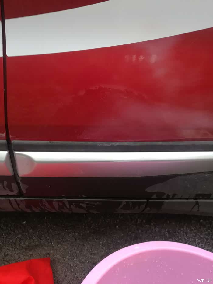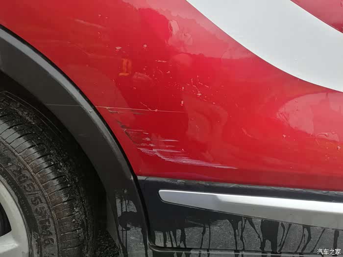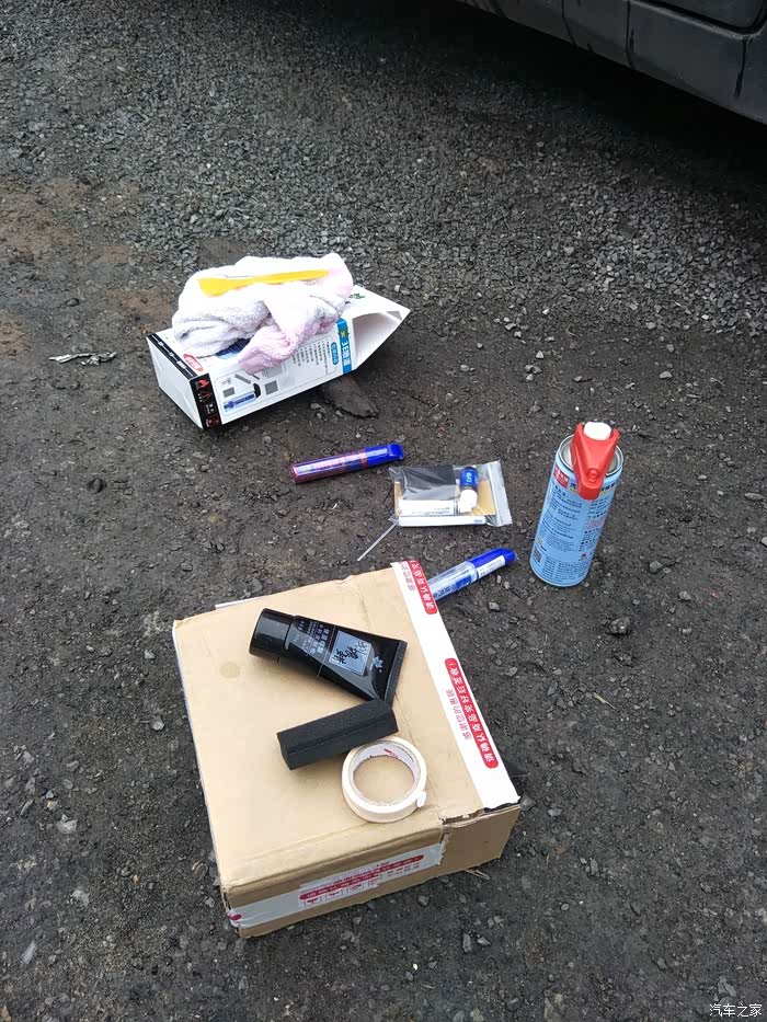 第一次擦刮是在买车后大约两周的时候,在沙坪坝某条双向单车道支路里面。为了避让一个过路行人,结果车体的右侧后轮眉前面一点点和道路中间的塑胶的防撞柱擦上了,还好不是很严重,只是车漆表面擦花了,没有露出底漆。然后就没有管它。送媳妇上班的路上,也是在一条单车道里面,一个哈摩托车停在路中间,我固到卡过去,结果位置刚好那么宽,把左后侧车门轻轻划了一条痕迹。还好不明显,车漆都没擦花。更是懒得管了。 第三次也是在1月左右,在支路里面侧方位停车的时候,位置判断不准确,把车前面一个占位置的摩托车给刮倒了,然后我的车右前侧那个黑色塑料那里给刮了一条杠。对方占位那个摩托车也没得事。真的是烦这些摩托车。第四次也是目前最严重的一次,还是在一个双向单车道里支路里面。调头的时候转弯打急很了,车体左侧的后门碰到了路中间的隔离护栏,还好我感觉是过不到,及时停下来了。然后挂花了大约2cm。露出了底漆。不弄又不得行,怕周围的漆面都跟到受影响。所以下决心网上淘了一套补漆的东西,自己来补漆。