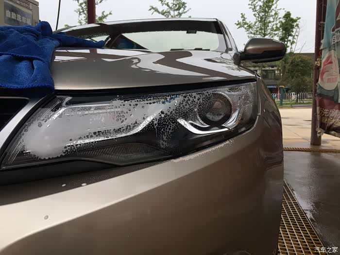 大灯上晚上行车很容易就粘上很多蚊子,严重影响美观,这里也要喷上泡沫清洗剂