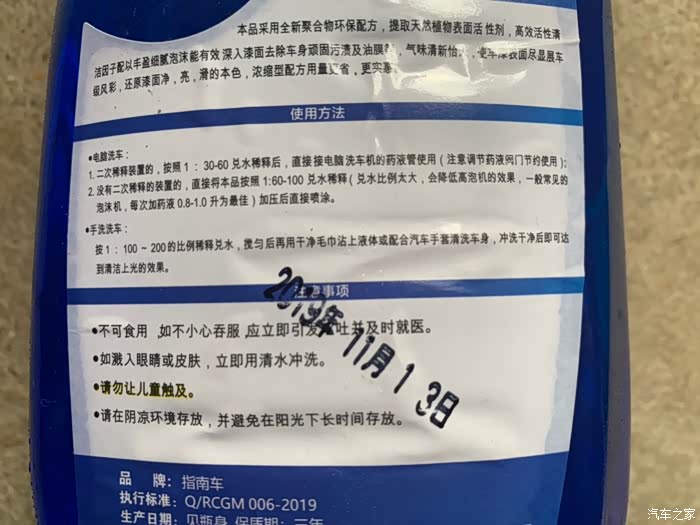 现在给爱车洗车的方式有很多种,一种是去到洗车店花钱让人洗,费用较高,而且有些店洗的不一定干净,一种是自助洗车,这种相对比较便宜,商家设施提供得很完善,有清水,泡沫,吸尘等设施,使用过几次的自助洗车,我个人觉得他们提供的洗车液并不是很好用,而且收费也是比较贵的,所以我自己买了这瓶蓝莓爽洗车水蜡。因此今天跟大家分享的是这瓶蓝莓爽洗车水蜡,对于我比较喜欢动手洗车的人来说,一款能把车子洗得干净的洗车液能带给人一种心情很愉悦的感受。