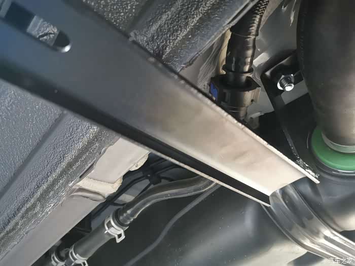 装另一边时,按道理说应该速度快些了,可实际上不快。原因是装车右侧的脚踏板时,油箱管子有点碍事。