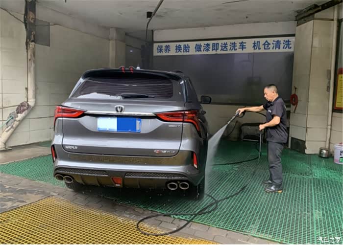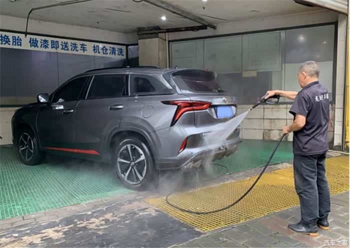 在水枪的喷洗下,车子变得越来越干净,虽说本来就不是很脏吧,洗过之后就和新车一样一样的,光泽度很好。