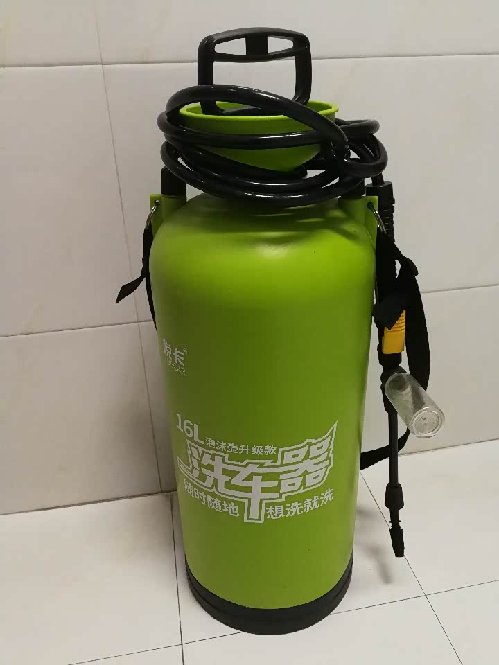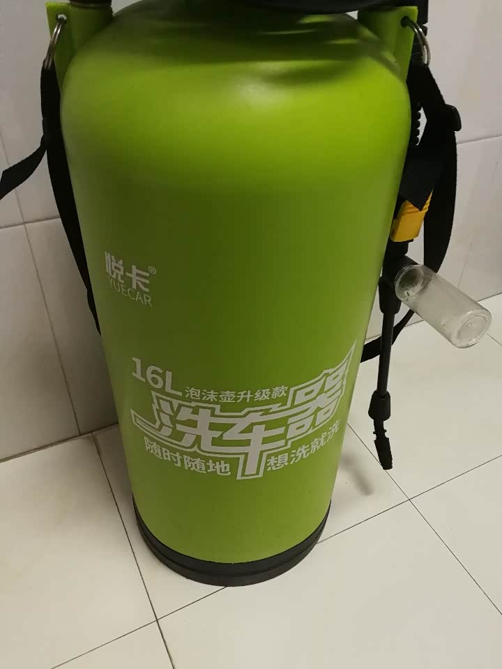 这款悦卡环保节约用水洗车器是从某宝购买的,为什么要买这款洗车器呢?因为之前在外面洗车老是洗的不干净,当时也没有注意看,后来发现了车上的印子几次洗车都没有抹干净!回家还要用洗车抹布抹一遍刚洗过的车!后来打算有时间就自己洗车了,才购买了这款悦卡环保洗车器。这款悦卡环保节约用水洗车器,看重的是它的节约用水,质量还不错,看颜色就觉得它环保,产品清单有洗车器,洗车泡沫壶,连接延长管,毛刷,可调节喷嘴,液压杆打气增压式喷水洗车,水压一般!这款悦卡环保节约用水洗车器认真洗一次车花费的时间长,人也累到了!自己洗车虽然累,但是爱车确实洗的干干净净。如果用水用电比较方便的用户不建议购买这款悦卡环保节约用水洗车器!