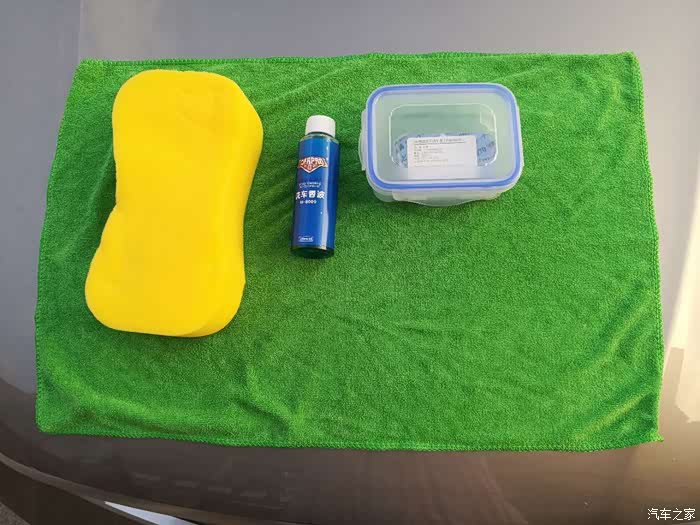 一盒洗车泥一块毛巾一块海绵和一瓶洗车香波,可以看出商家的用心之细!