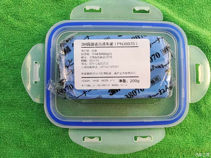 软硬适中,就像小时候那种可以揉变形的橡皮。开始很怀疑他的作用,找了一小块前门底部的柏油黑点,那东西很难洗,要用指甲抠才能洗掉,我就直接打湿用布把表面洗干净,直接洗车泥上去擦,2次,一个来回,黑点没了,一点没夸张啊,柏油污渍 来回一次,就没了。哈哈哈。很爽啊,我知道车身毛糙肯定也可以解决了。