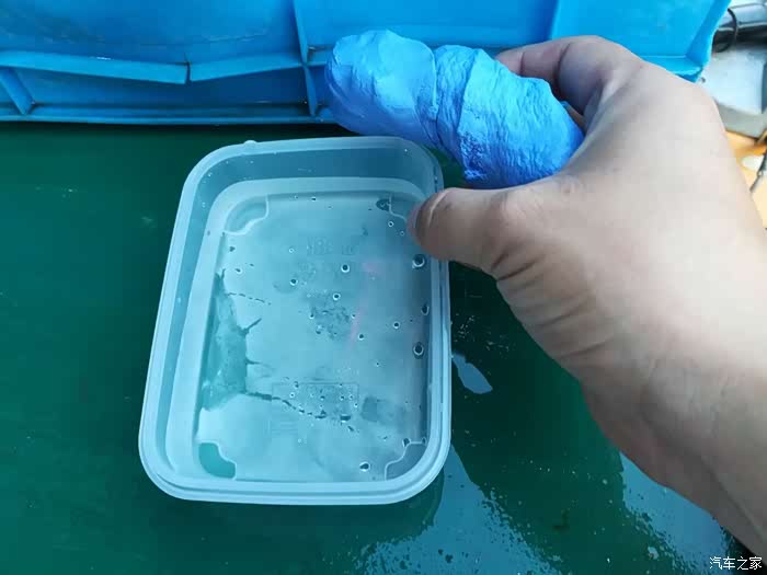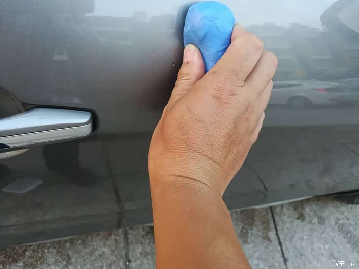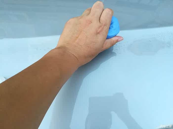 2,洗车泥放水里捏十几秒,感觉打湿了就可以了,车身水不要擦掉,直接上洗车泥去污