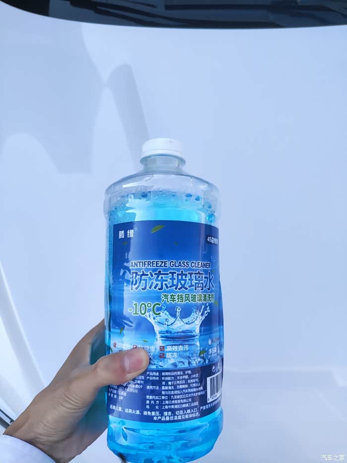 最后再往雨刷器里加点玻璃水。玻璃水一般上面都会标注有温度,如果北方地区就要买那种耐低温比较厉害一点的玻璃水。南方地区就没那么讲究,因为南方没有那么冷。