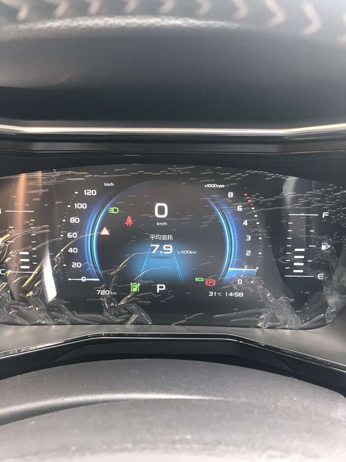 比较浪,跑了720km,表显7.9L百公里的油耗。我是非常满意的