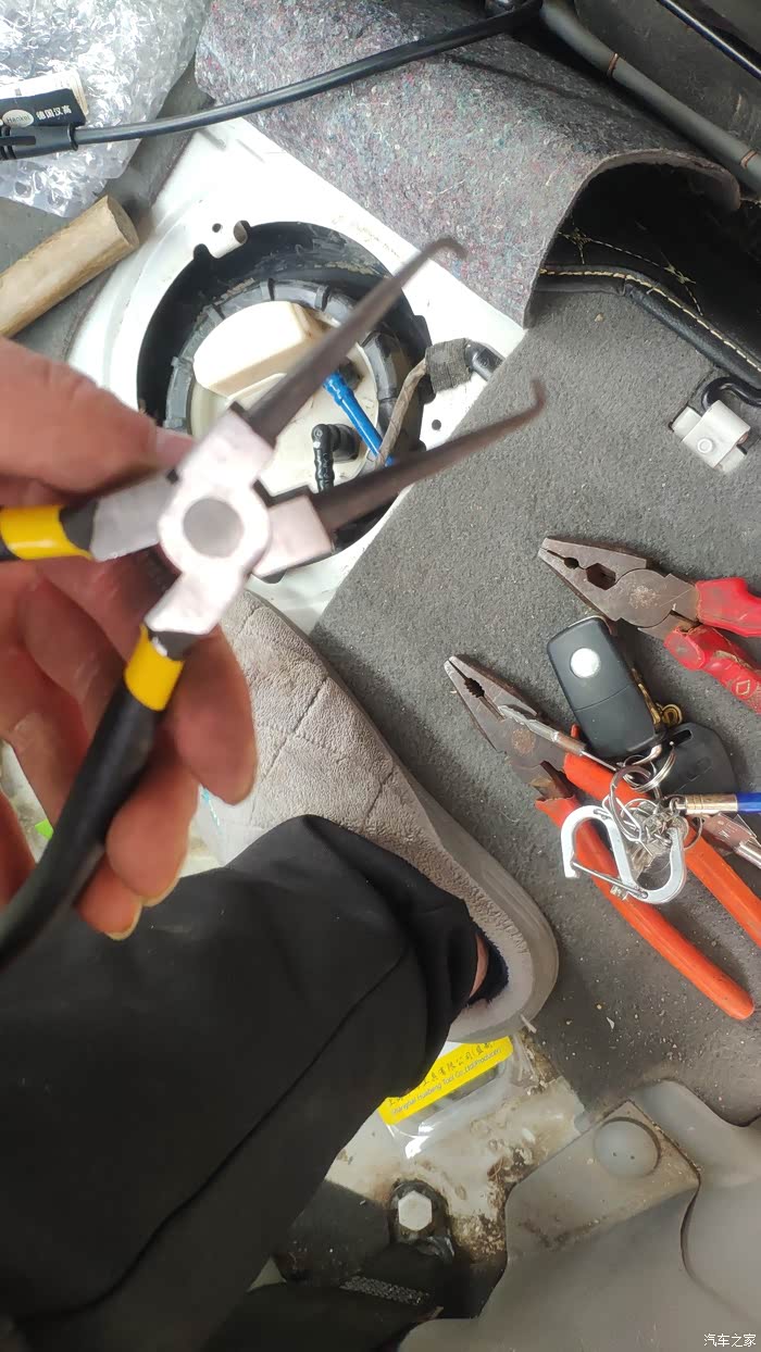每天56十公里,出现过油量不稳,刚打着就走,车子转速忽高忽低,低到要熄火,又起来,估计这些征兆就是供油不稳了吧。疫情期间开车出去买菜就打不着火了,看了所有保险丝都没问题,继电器看不出,温感通过拔掉装上5053测下判断没问题。实在不是能力范围了,先后发帖求助,大侠指点,把重点放在了油泵上。钥匙打开没动静,油泵不工作了,又检查了保险没问题。只等上班了刚买的油泵,收到拆封就装上了,搞了5个小时,寸步难行。难点1,大帽都把齿砸掉了,再砸怕邮箱都掉了。
