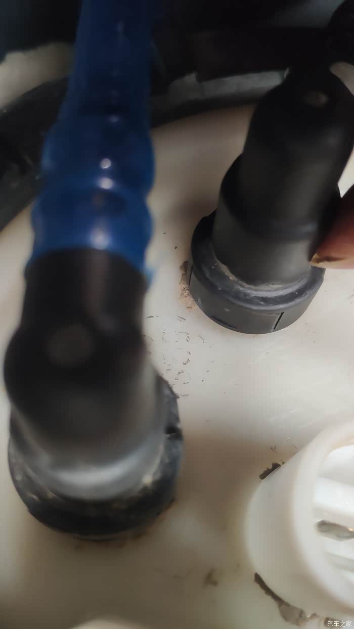 2,进出油管有动静就是拔不下来,仔细看有俩眼,猜想是弹簧束,从家出门一路借钳子,修电车的,五金店也没有,硬头皮买了把,用钳子改下角度,顺道问了问修车铺的老板,他说后面用螺丝刀顶一下,不是那两个眼,我说后面没有啥,他说肯定有卡子。我傻傻的拿着钳子回去拽,搞了10分钟,只转圈就是不下来。又请教坛友,才发现后面的卡子。尴尬啊
