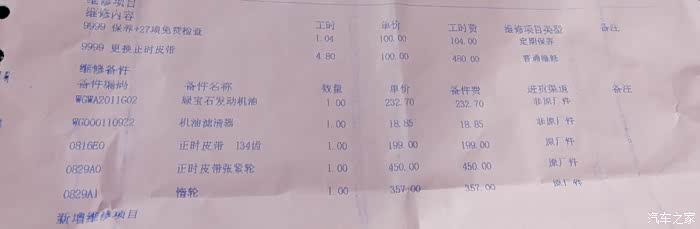 师傅手技不错,很熟练,光更换正时也就1.5小时多,中间还抽了根烟。下午2:00开始不到3:30就交车了。