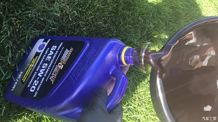 上次换油之后,车主到现在跑了约7000英里,约合11000公里。这次换完油之后,最后废油正好装满一个5qt的油桶,而这车子换油量是6qt,上次用的是一大一小两桶紫皇冠,也正好是6qt。 考虑到,换油过程中,机滤那里出油较多,机滤里也有存油。还有少量放油撒漏和沾在盆子上的油,这11000公里过程中,估计烧了半升多机油。这次换油我同样拍摄了视频,等花点时间编辑一下,会贴在Bilibili的我的同名账号“止疼药Painkiller”那里,欢迎大家去围观捧场哈。