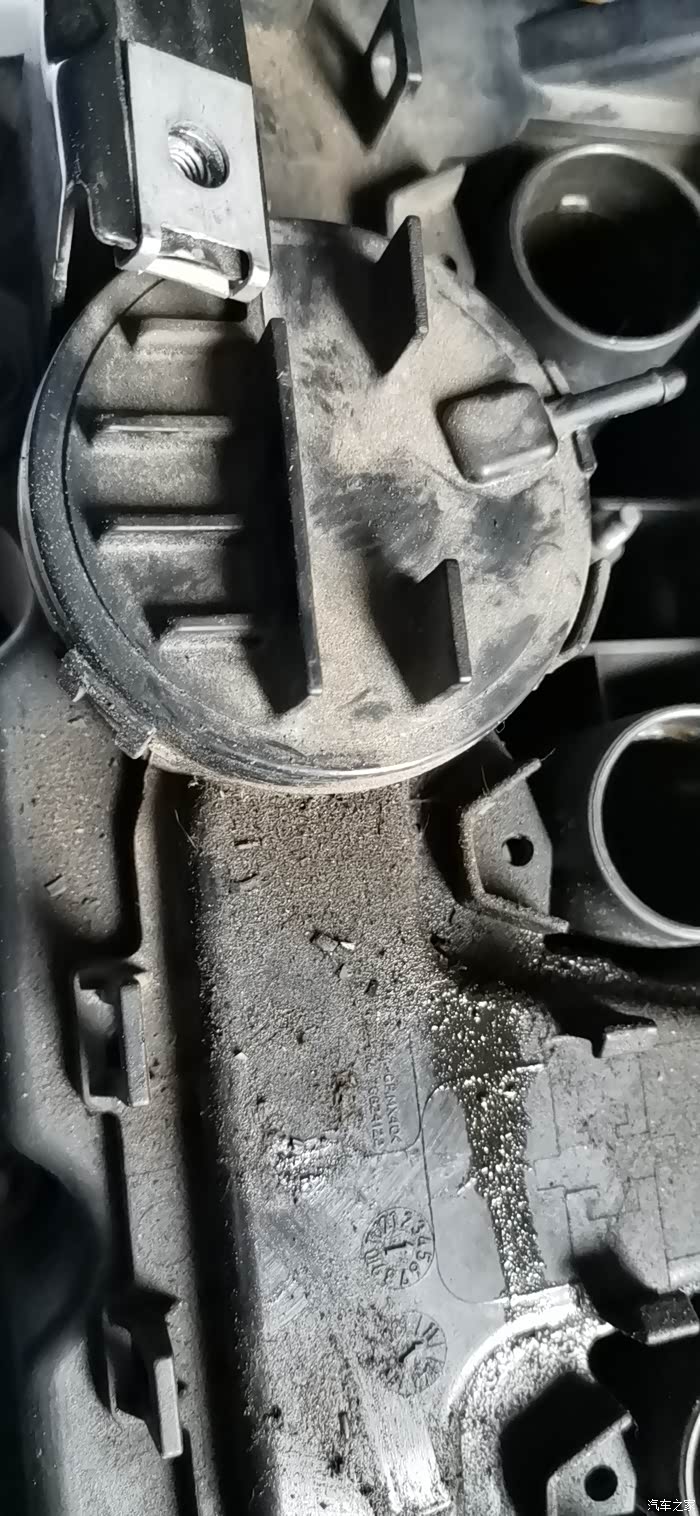 这个一体的圆形部位,就是气门室盖罩废气阀击穿位置,导致行驶时偶然会吹口哨声响,很尖锐的声音。