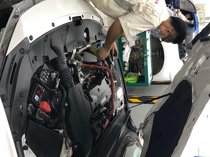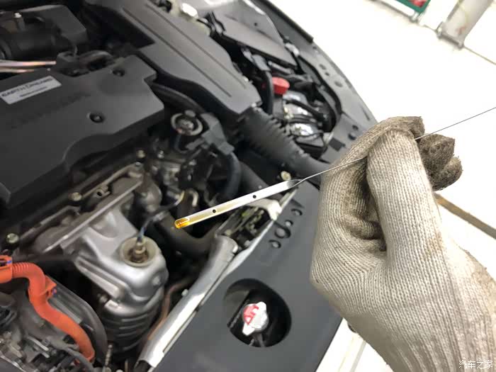 今天开了一百多公里,最近看到论坛有说混动机油问题,要求4S测量一下机油。先停车冷却发动机。