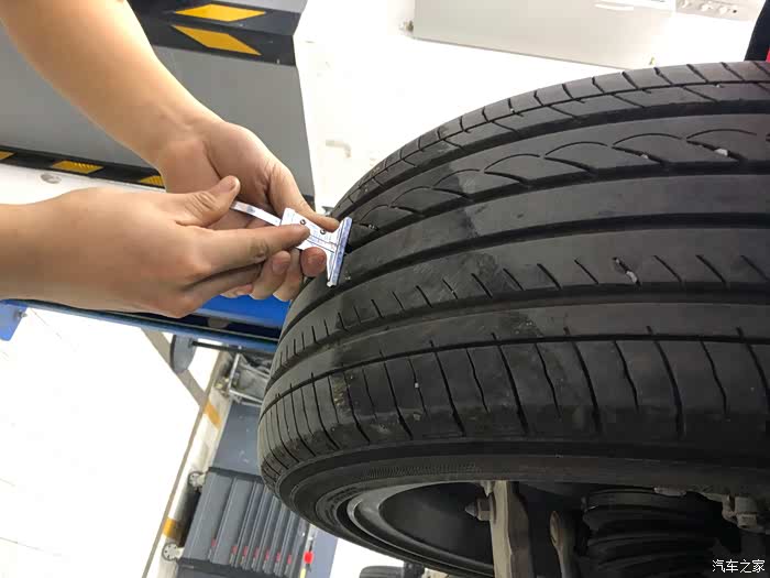 测量轮胎的厚度,轮胎还行,没有发生什么偏磨