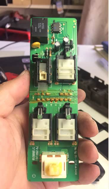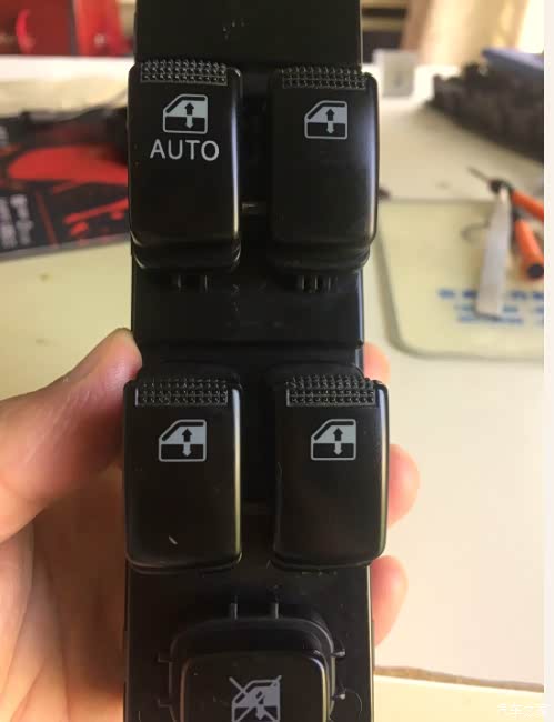 把开关总成拆下来拿到办公室琢磨琢磨,车窗暂时开不了,冷热先空调解决