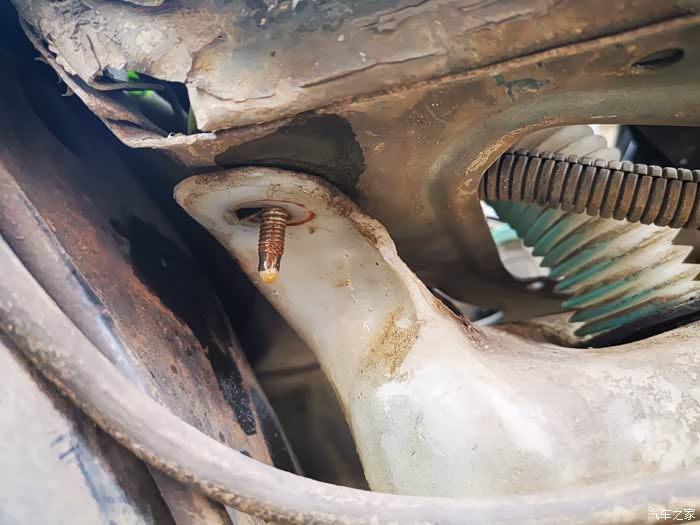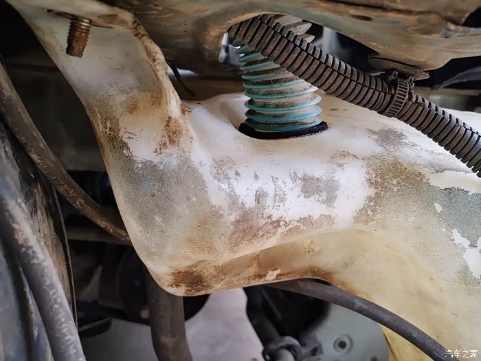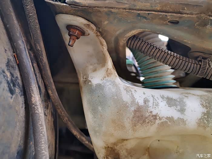 我灌上水后测试一下,不漏了,但是发现后窗喷水时,水壶旁边的胶皮管子哗哗喷水。一看管子有一个大口子,修吧
