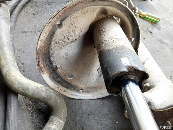 这个是右边前轮的减震!已经伤痕累累了!锈迹斑斑!
