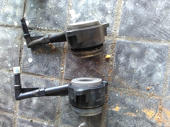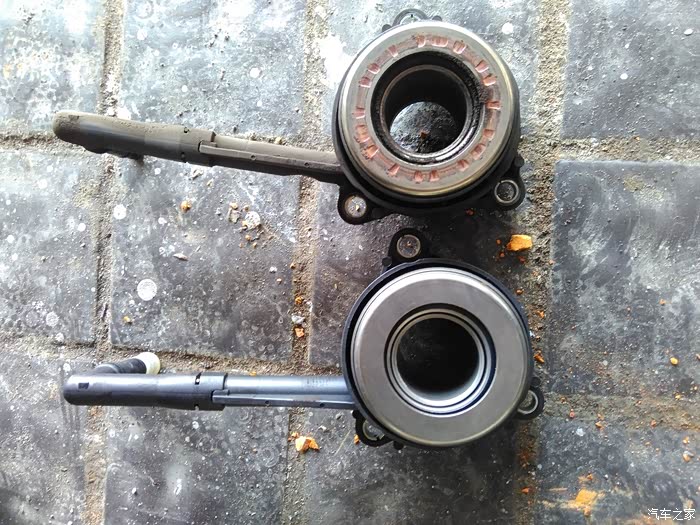分离轴承新旧对比,旧的轴承用手旋转,有异响.新的转着没声音,但是有阻尼感,估计是新的缘故.