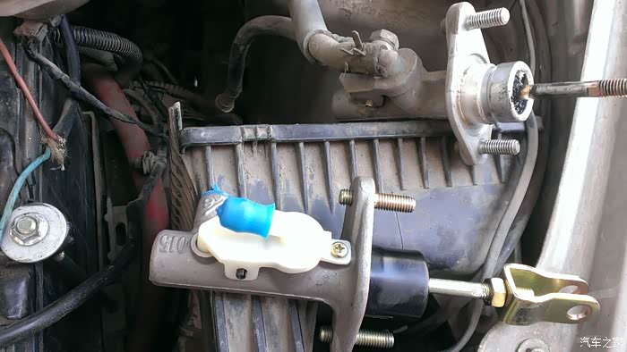 位置调好后,紧固螺丝。排除空气添加刹车油(步骤不述参考有关帖)主要注意的一点:刹车油壶在排空的时候油必须在上线之上,因为油壶里面有一个单独的隔断是供给离合总泵的,而且正好背对观察部位,朝向风挡位置,排空的时候即使离合油格一点油没有了,在观察部位看也是有油的,容易造成误判。给人一种干排空排不净的假象,到修车厂马友也要小心,不要因为这种假象而挨宰。