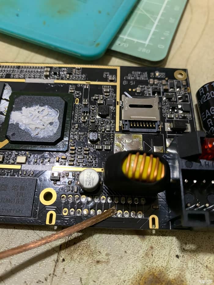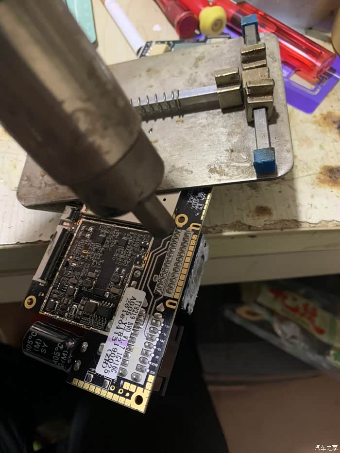 取下来了,我还小看它了,竟然还是高温锡,吹了两分钟才拿下来