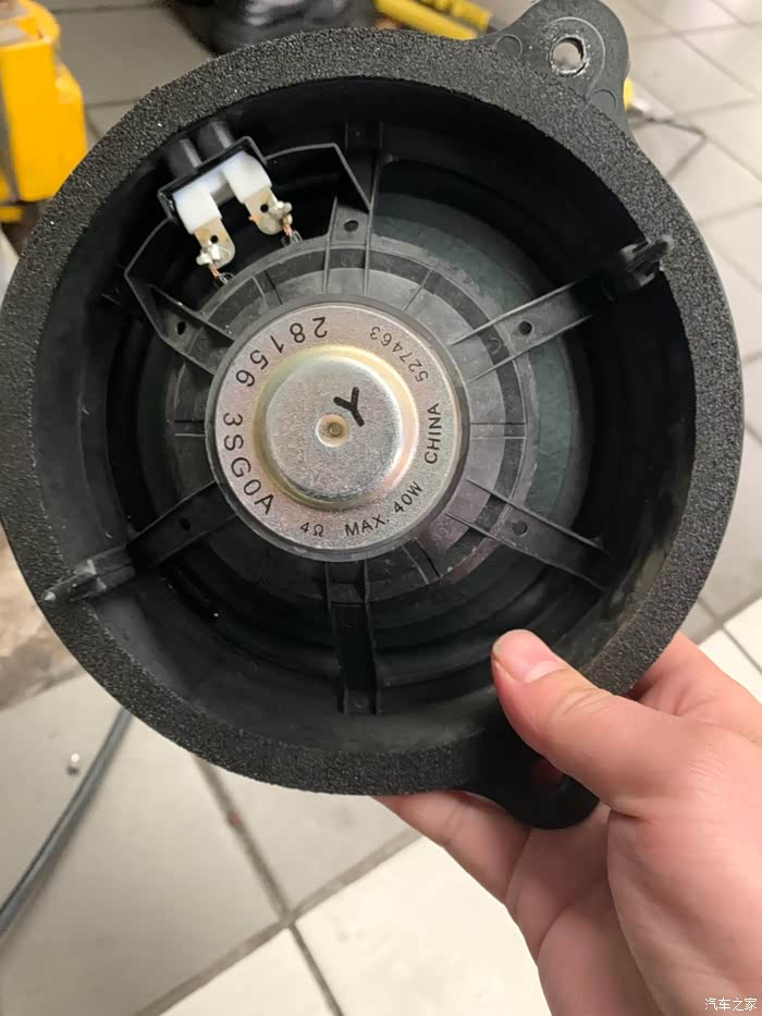 拆下来的喇叭,这里说一下,原车喇叭是直接卯在车门上的,4s师傅也拆了好久,电钻打磨机大锤,画面很残忍