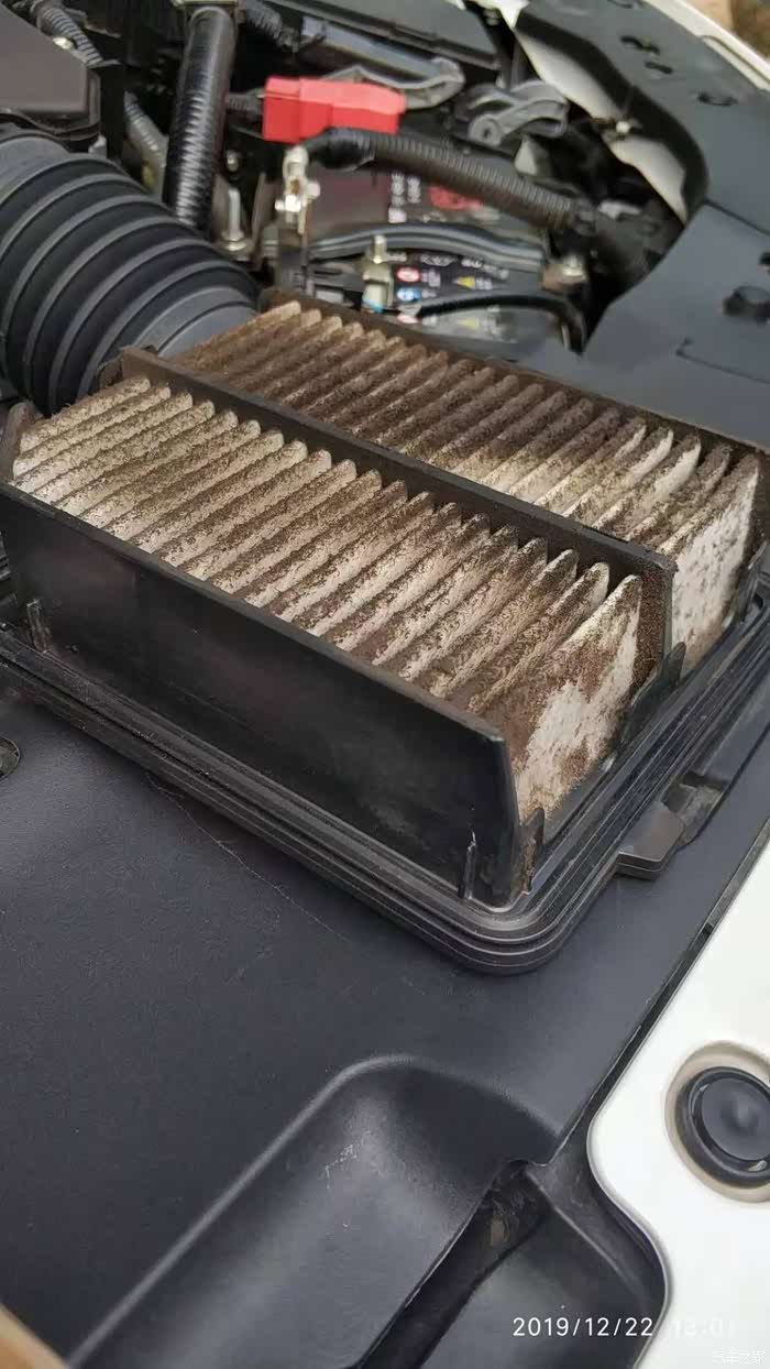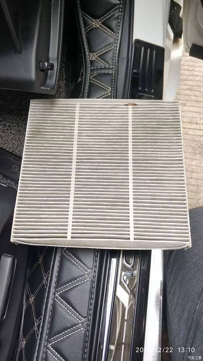 取下的原车空调滤芯,因为1个月之前拆出来吹过一次,而且最近没怎么开空调不是很脏。