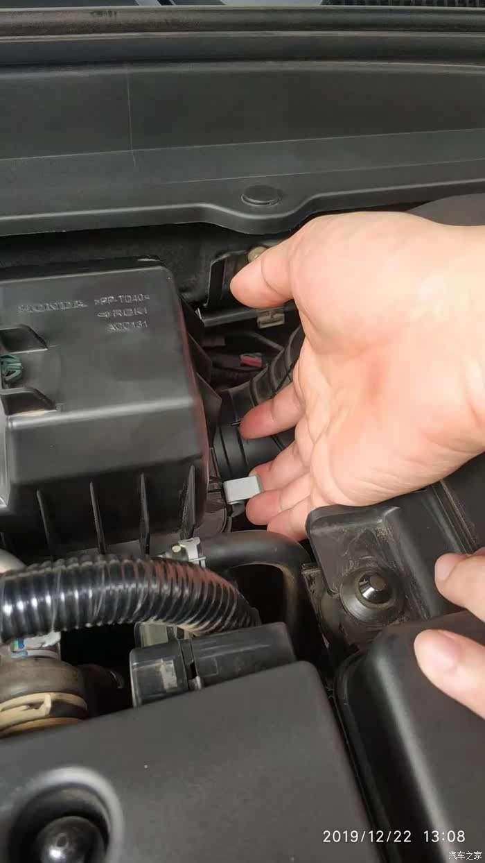 这个是发动机进气空气滤芯叩开2个铁压片取下滤芯壳。