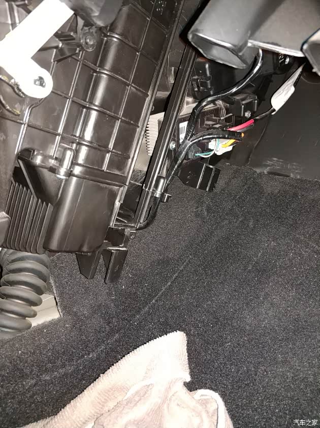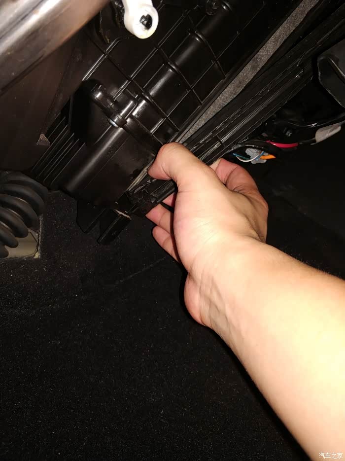空调滤芯盖子下方的卡子形状,用手指伸进去拉下就好