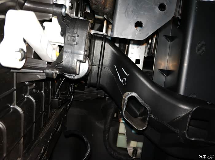 拆下上挡板以后就能看到空调滤芯盖子上方有个十字螺丝固定,取下来
