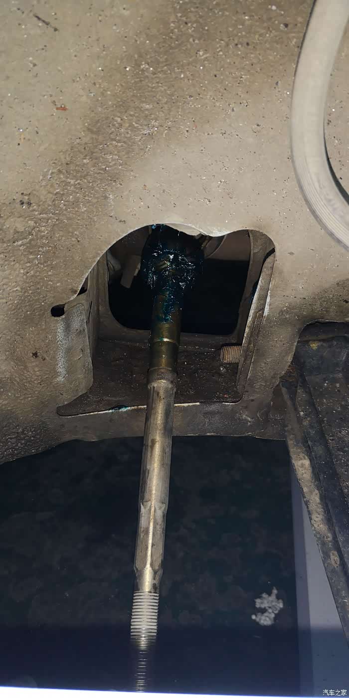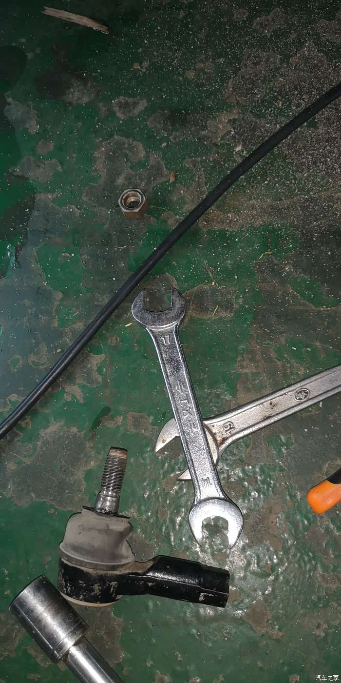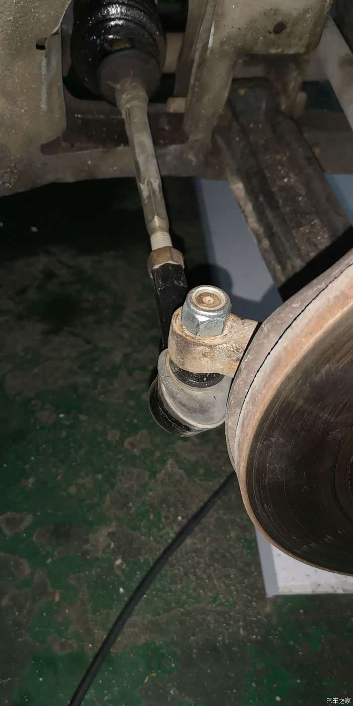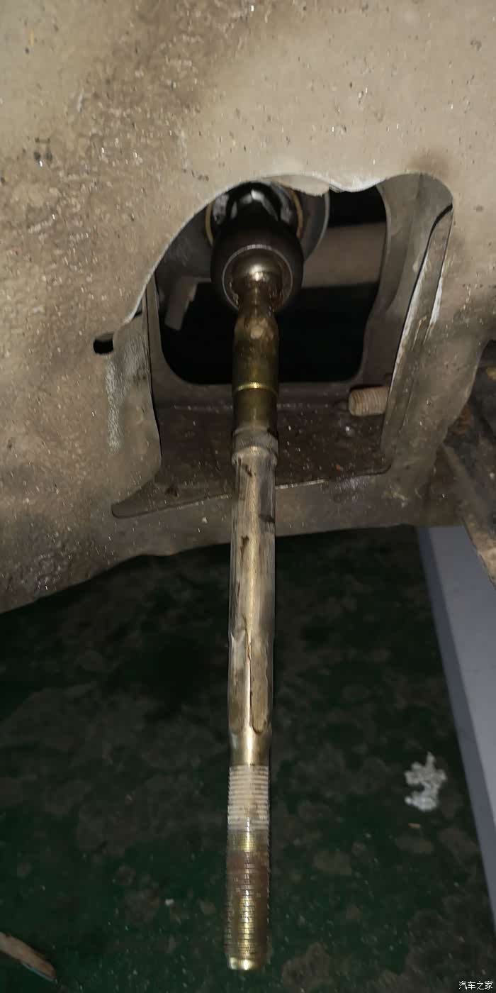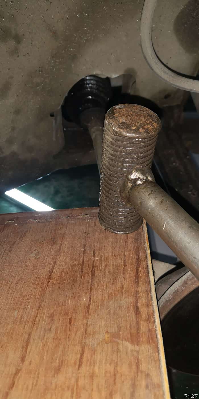 然后要把外球头拿下来,垫个木头使劲敲,后来没敲下来,把螺母拧上,跟丝杆平头,用锤头使劲一敲就下来了!