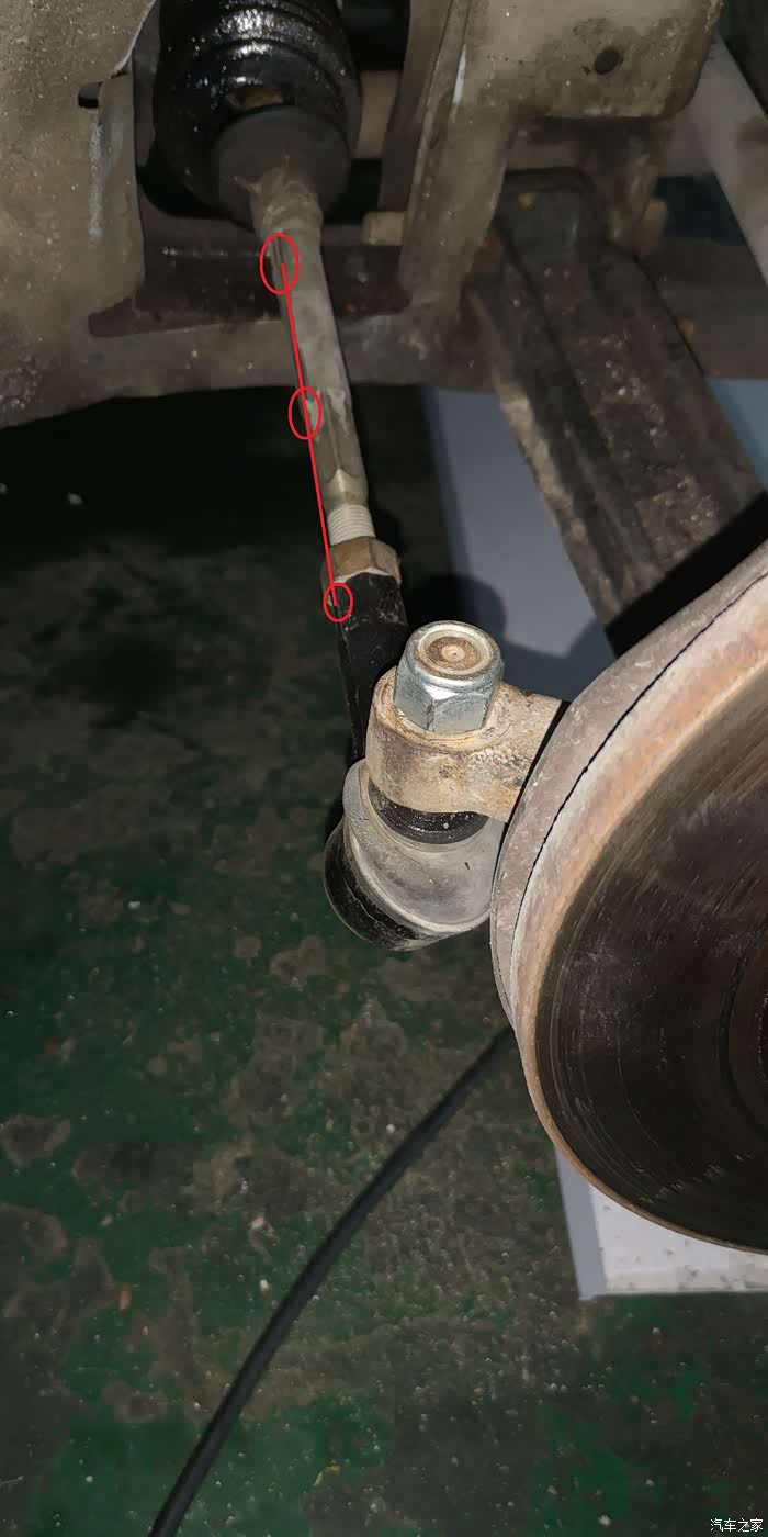 一定要记住,外球头一定要跟内球头的丝杆做一个记号,外球头往下拧的时候数着圈数,往回装也是这样数着圈数,然后锁紧螺丝!