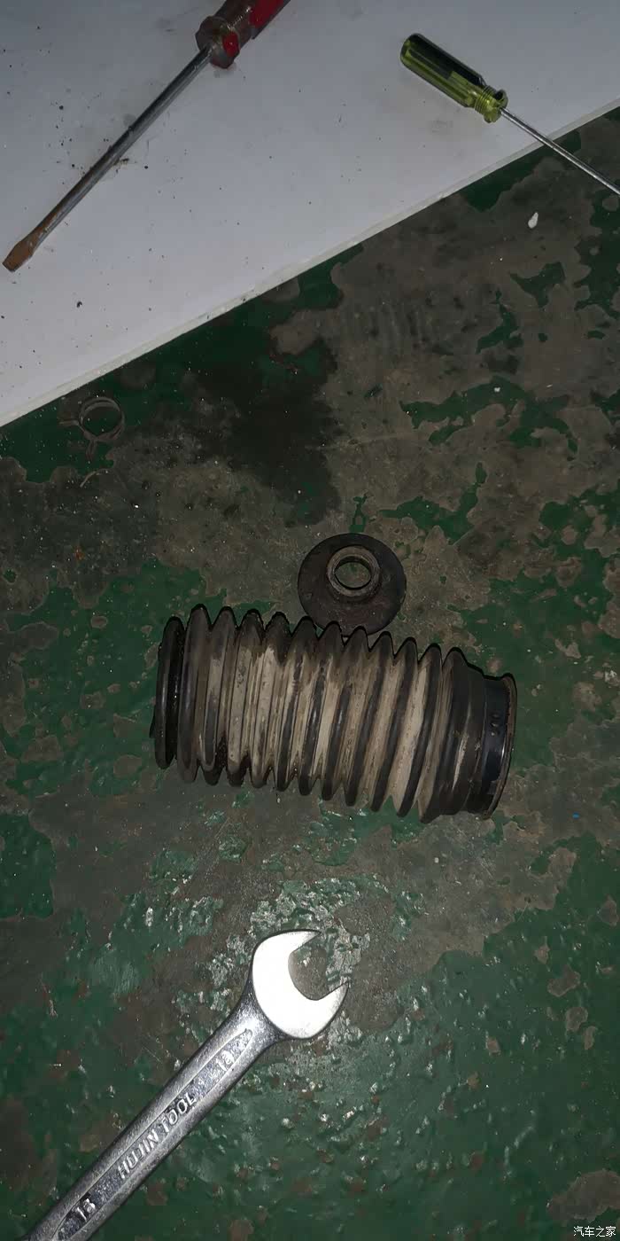 其实车子买回来就发现转向机的套子破了,当时换转向拉杆外球头的时候就应该一起换了,当时把也没多想,忘记换,不换这个东西总感觉是个事,本来想买个免拆的,看看评论不咋地,都说套子薄,想一想还是买个标准的吧!前几天从万能的TB花了22元买的,昨天到货的,结果下午有事没有换成,今天上午9点多开始干,直到下午2点搞好,中间吃饭、上街买卡箍浪费了一个多小时
