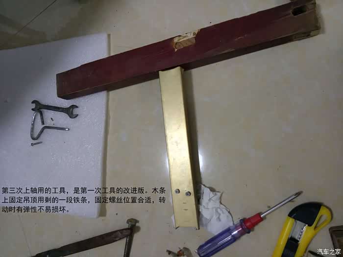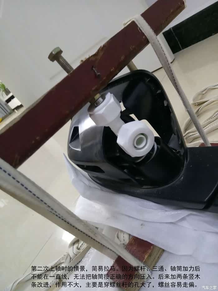 把轴安到支架上很不容易,三种办法才搞定。用这个死命卡住轴往下压,到位后稍逆转。