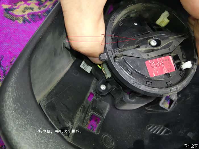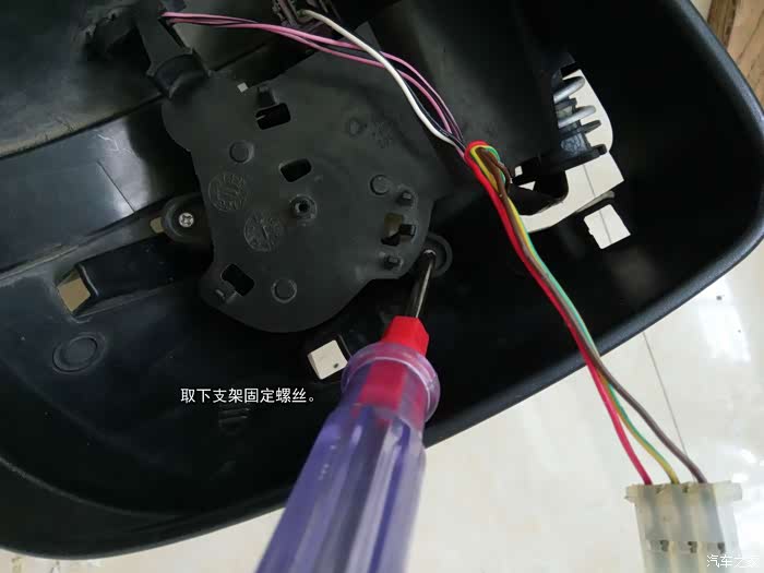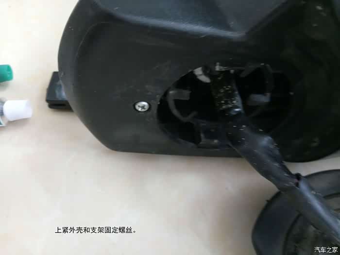 取下外面的一个外壳固定螺丝,取下后视镜支架。