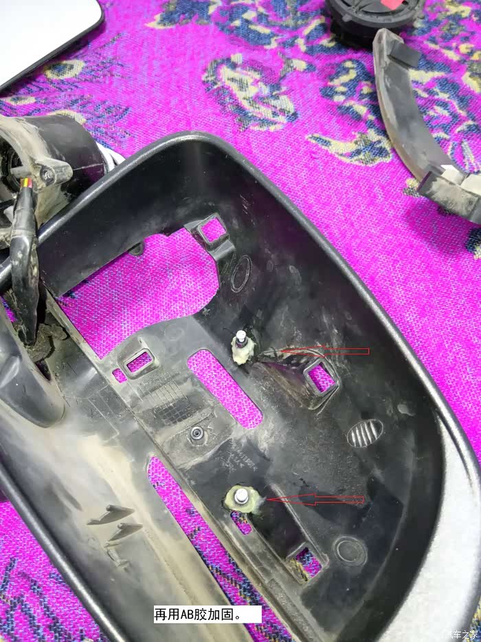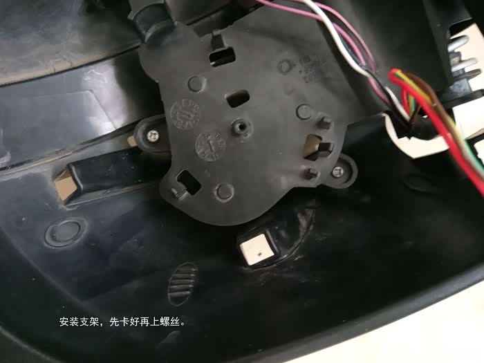 取下电机、支架、转向灯才好粘接。取下螺丝。