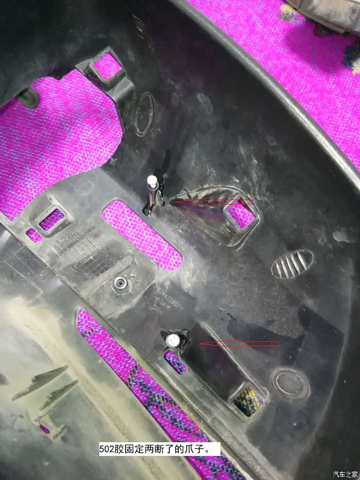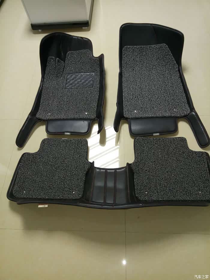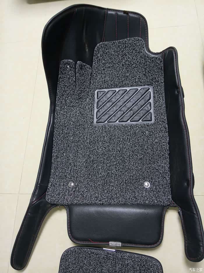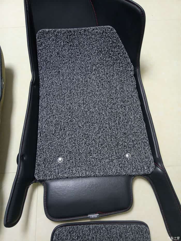 剪好的丝圈垫装在大包围上的样子。主副驾上的四个大点的扣子是淘来的,小点的是子母螺丝(记帐本用的那种螺丝),后排垫上四个也是子母螺丝。
