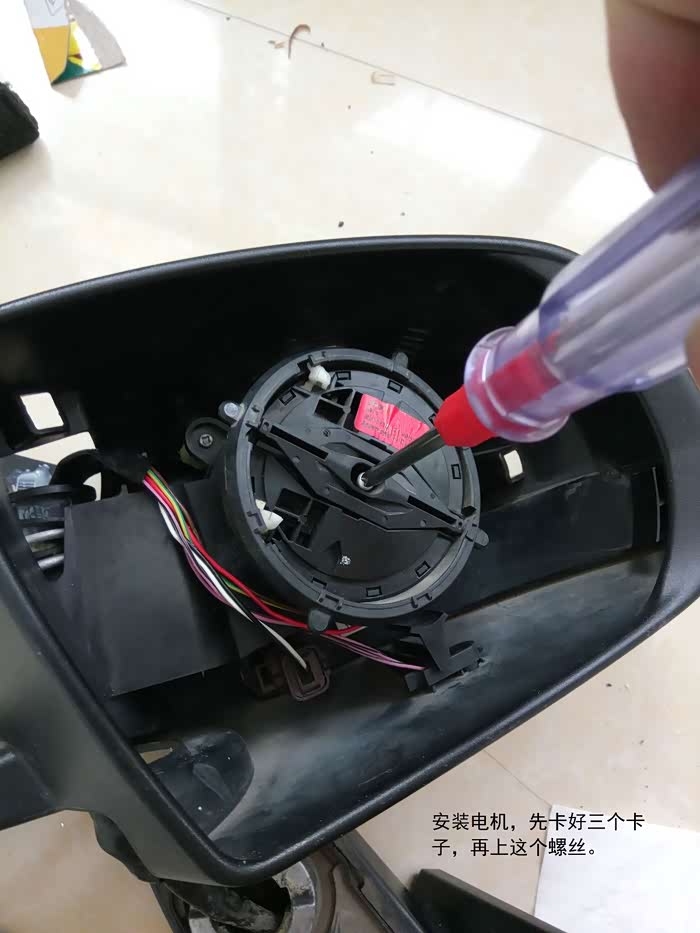 安装电机,卡好三个卡子再上好这唯一螺丝。