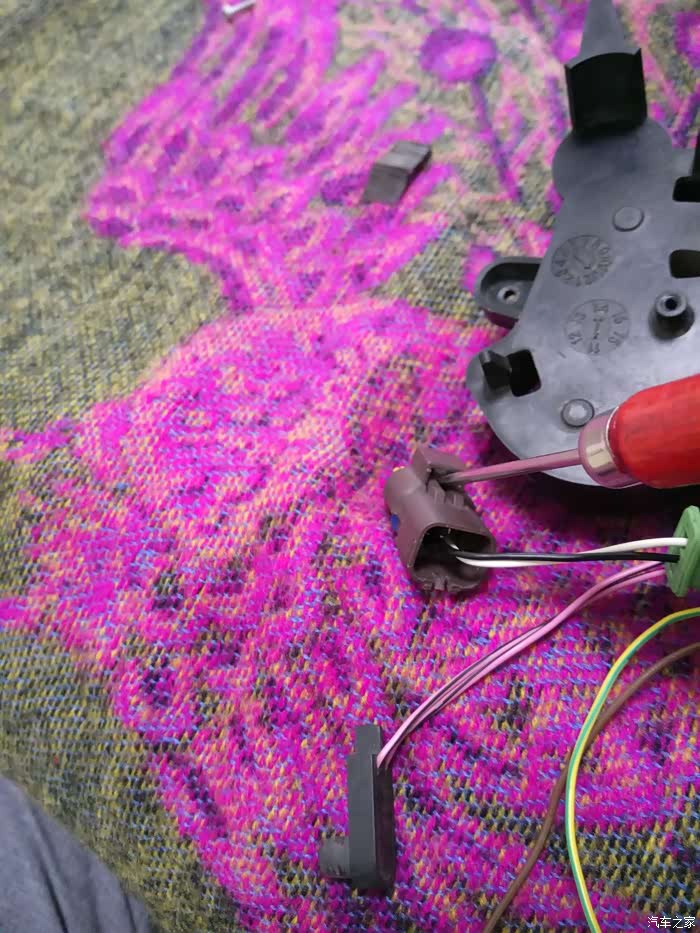 本图开始是退咸鱼上买来的断轴后视镜上的端子,怕弄断卡子,没敢退黑色接头上的端子。
