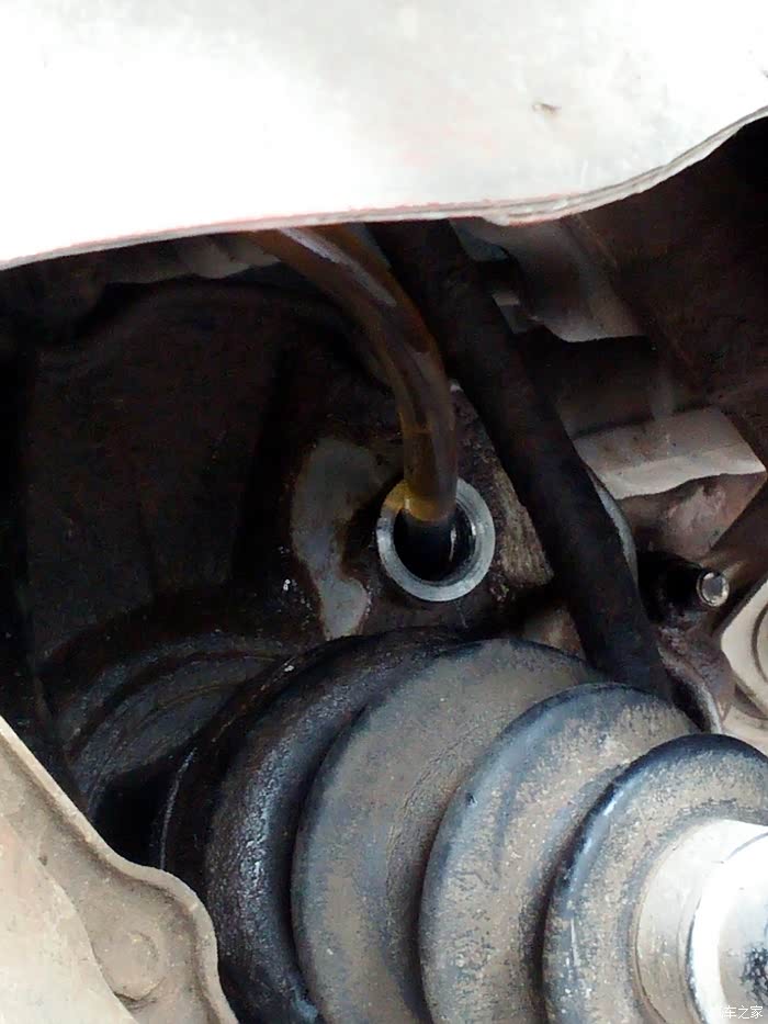 球笼位置密封圈长期渗油,已经几年,请别人搞了两次都没有修复成功,好在出油不多,跑了几万公里也没看见变速箱油量减少,平时固定停车的位置地上也没有油迹,所以就懒得理它了