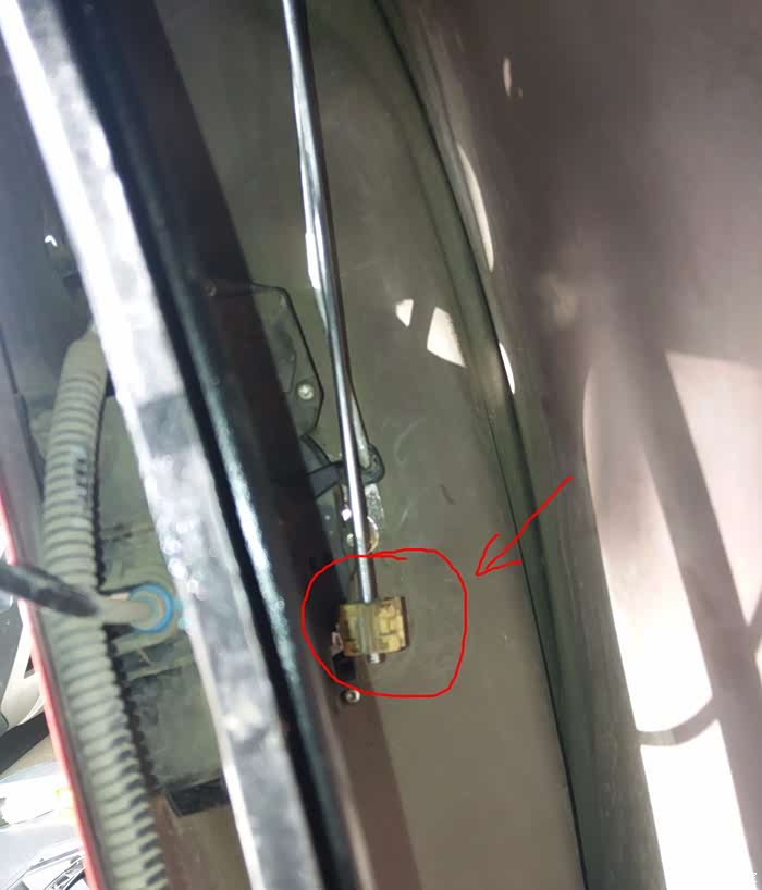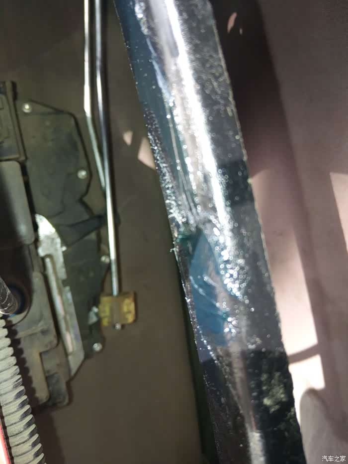 这里特别说明一下,在拆装车门的时候,大家一定一定要小心,玻璃升降和一个小喇叭的连接线,拔掉这三根线之前确认玻璃处于完全升起状态。这样才不影响下一步的拆装更换。如下图:这个就是玻璃完全升起状态,要不会挡住下一步的手工操作。