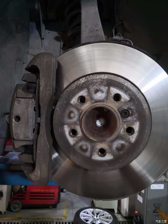 换前皮,535原厂前刹车是一个大的单卡钳