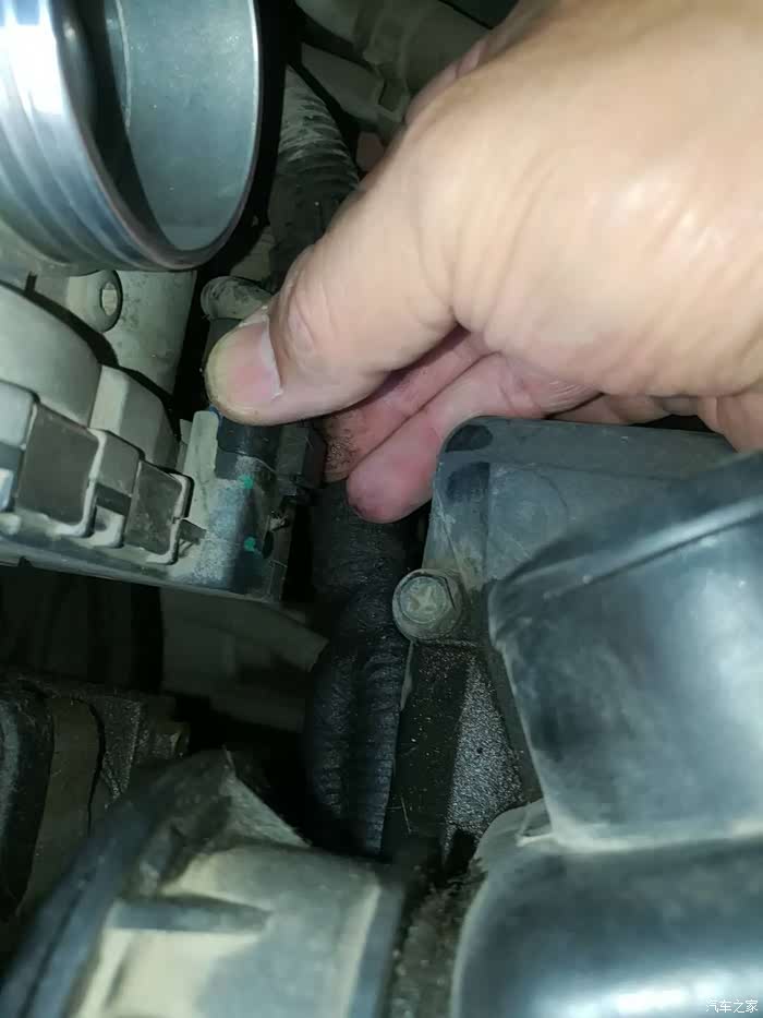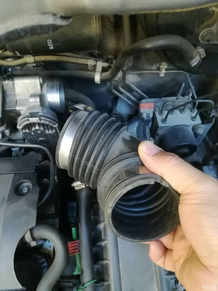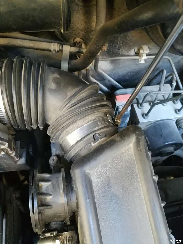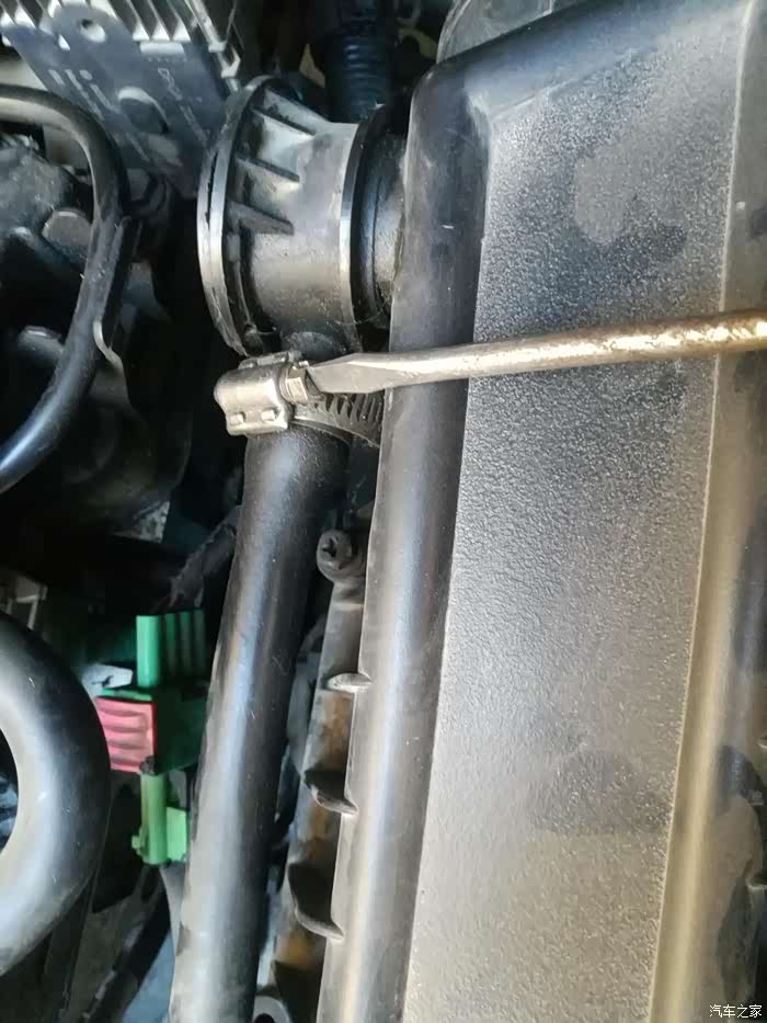 继续松开进气管前面卡子螺丝。
