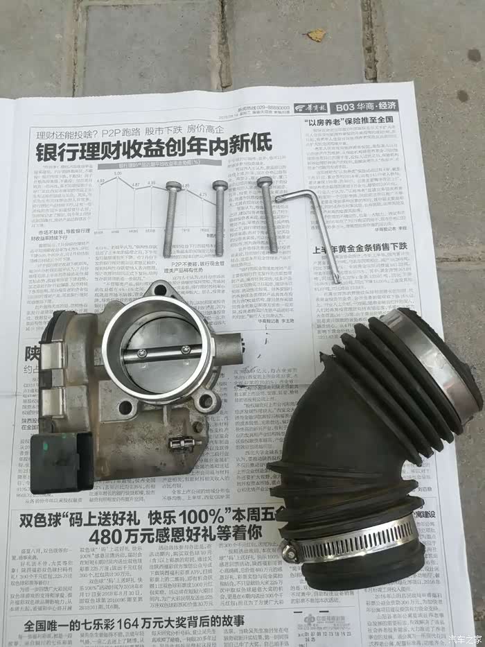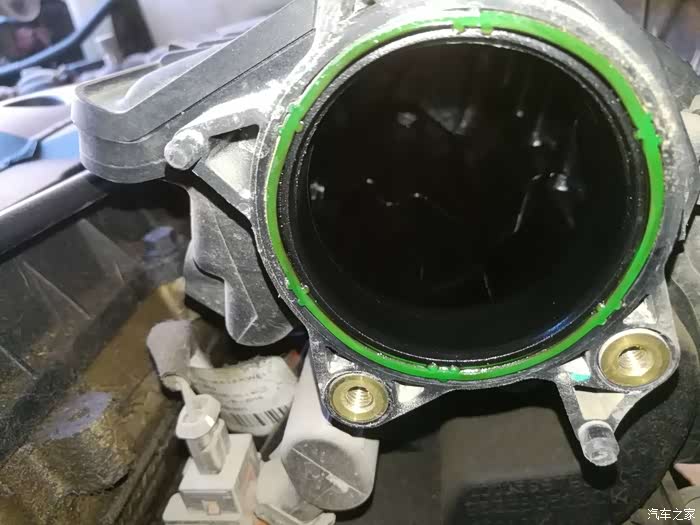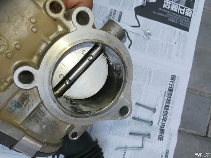 节气门拿下后面进气管部分,用清洗剂向里喷射然后用卫生纸擦拭。