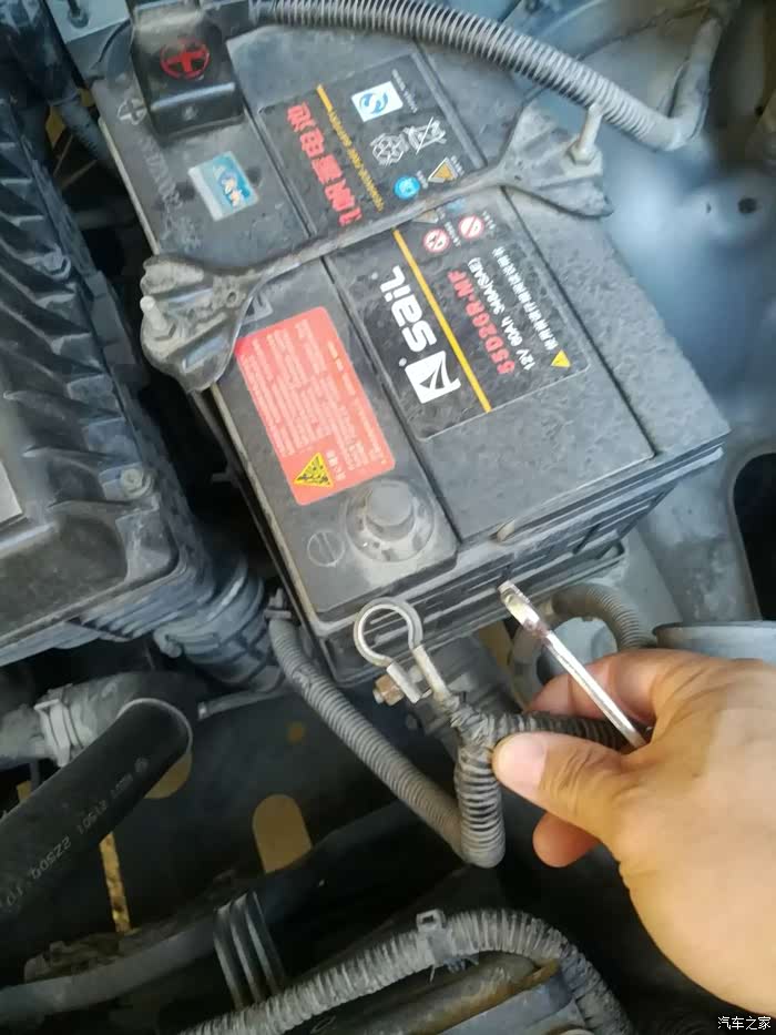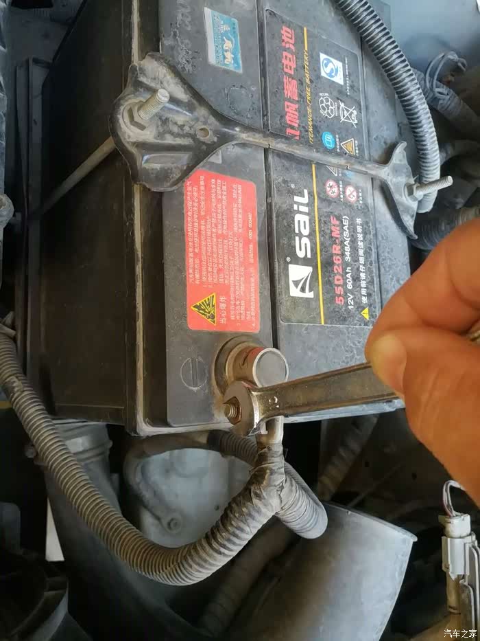 放在一边注意期间不要让负极触及电瓶桩头。