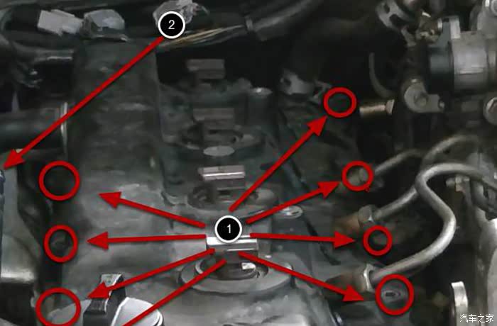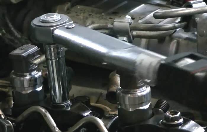 手册上说发动机后面的回油油轨螺丝需要拧开,我没有拧这个就把油轨轻轻往左掰了点就够干活了。