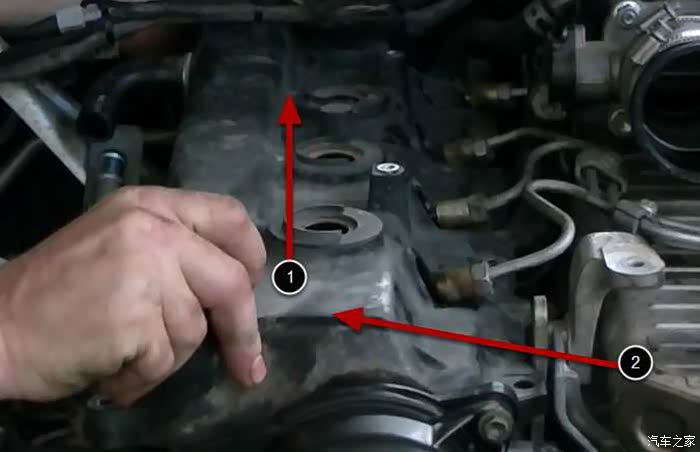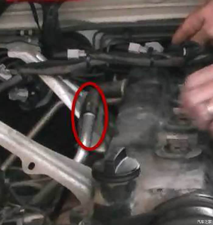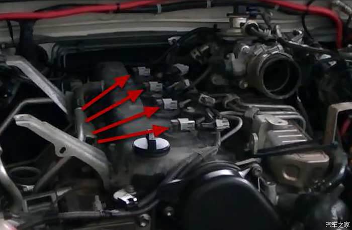 拆掉喷油嘴上的线束插头,在此之前要先拆掉空气滤盒上进气传感器,把整条线束都解开放到一旁方便一会开顶盖。