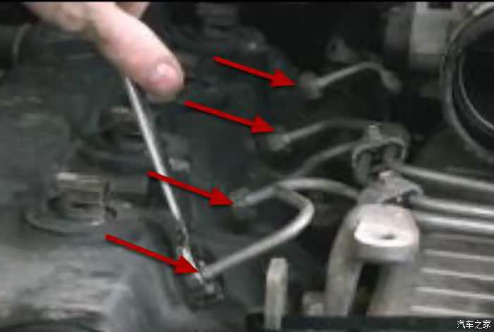 拧开4个喷油嘴的回油螺丝
