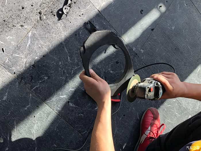 这次因为衬套没有合适的,真是现场手工制作,本来是要做成和原车喇叭椭圆形一样的衬套,不过最后没有用,因为弄完实在太难看了!具体怎么弄的看下面图吧!