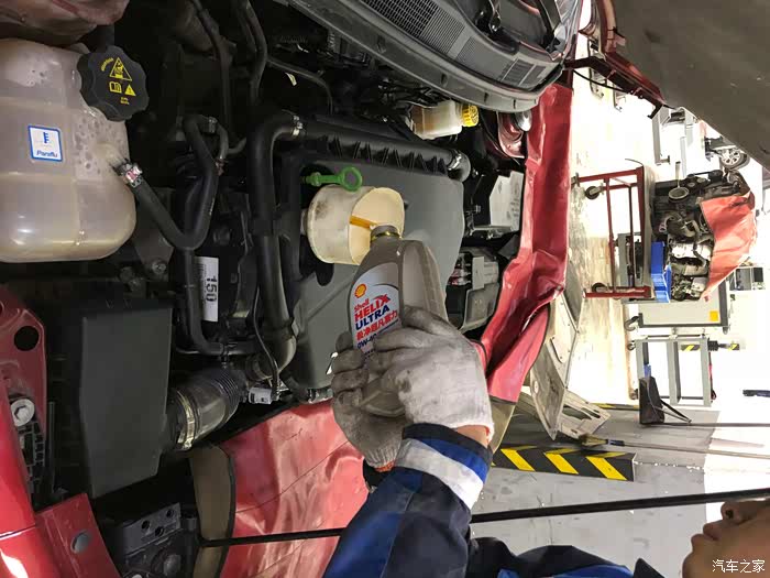 师傅在加机油,我是自带的机油,加3升就可以。基本跑13000左右,也不会有烧机油情况。