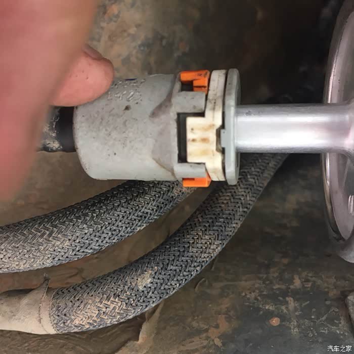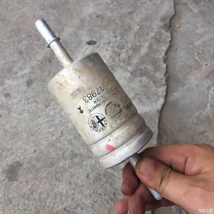 取下来的样子,用手堵住两头的口摇动,流出来的汽油是灰色的,不像别的车友作业里那么黑。